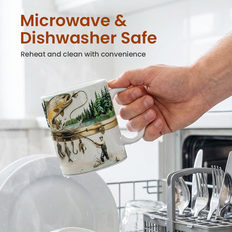 HÅLLBAR KERAMIKKONSTRUKTION: Denna mugg är tillverkad av högkvalitativ keramik och är designad för att hålla länge. Den behåller värmen bra, vilket håller ditt kaffe eller te varmt medan du minns dina största fångster och planerar din nästa fisketur.