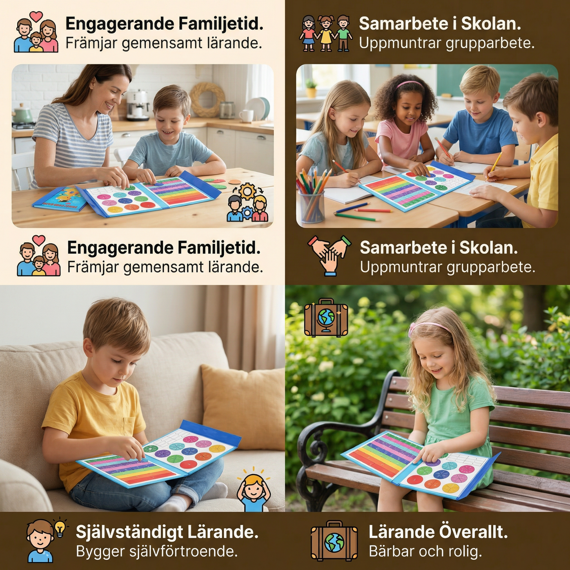 🚀 Växer med barnets kunskap: Från grundläggande bråk till mer avancerade beräkningar – tavlan anpassar sig efter barnets utveckling.